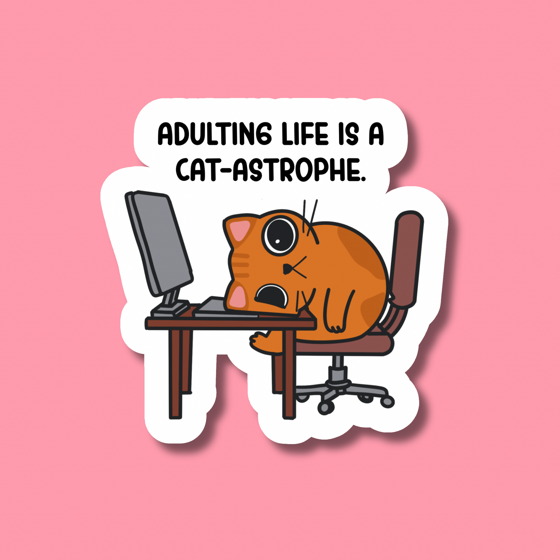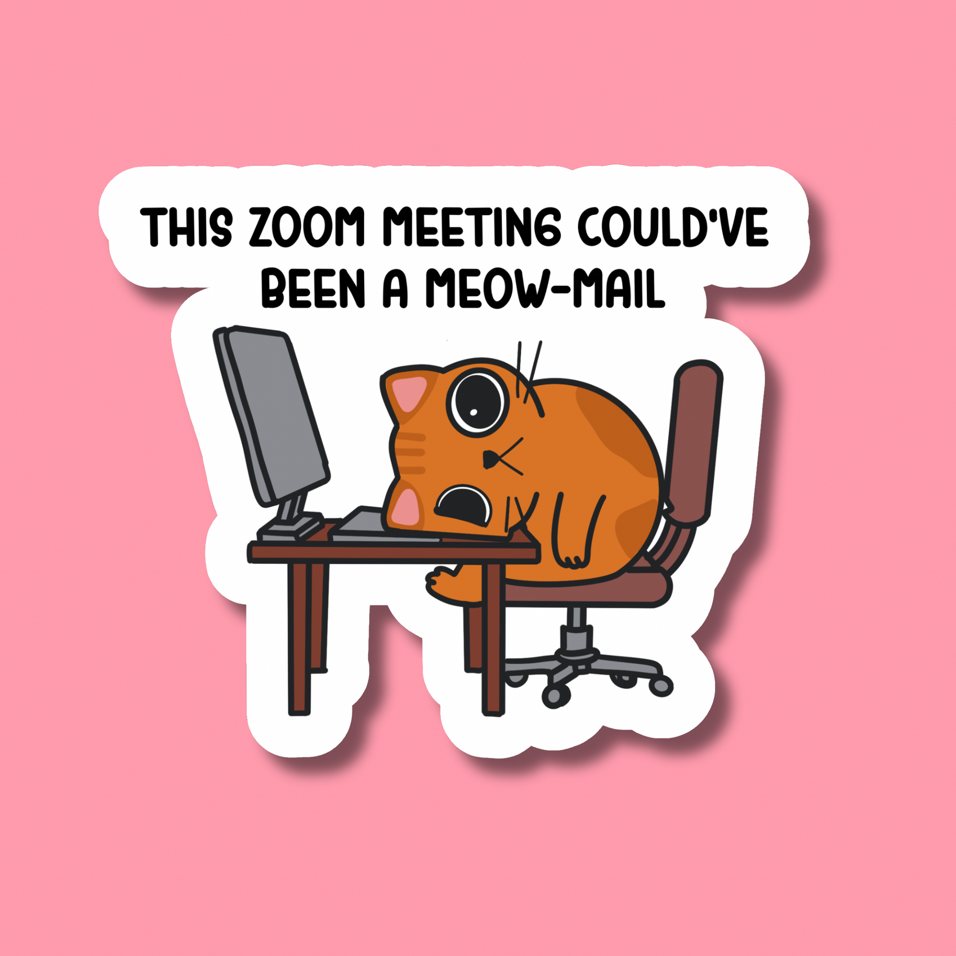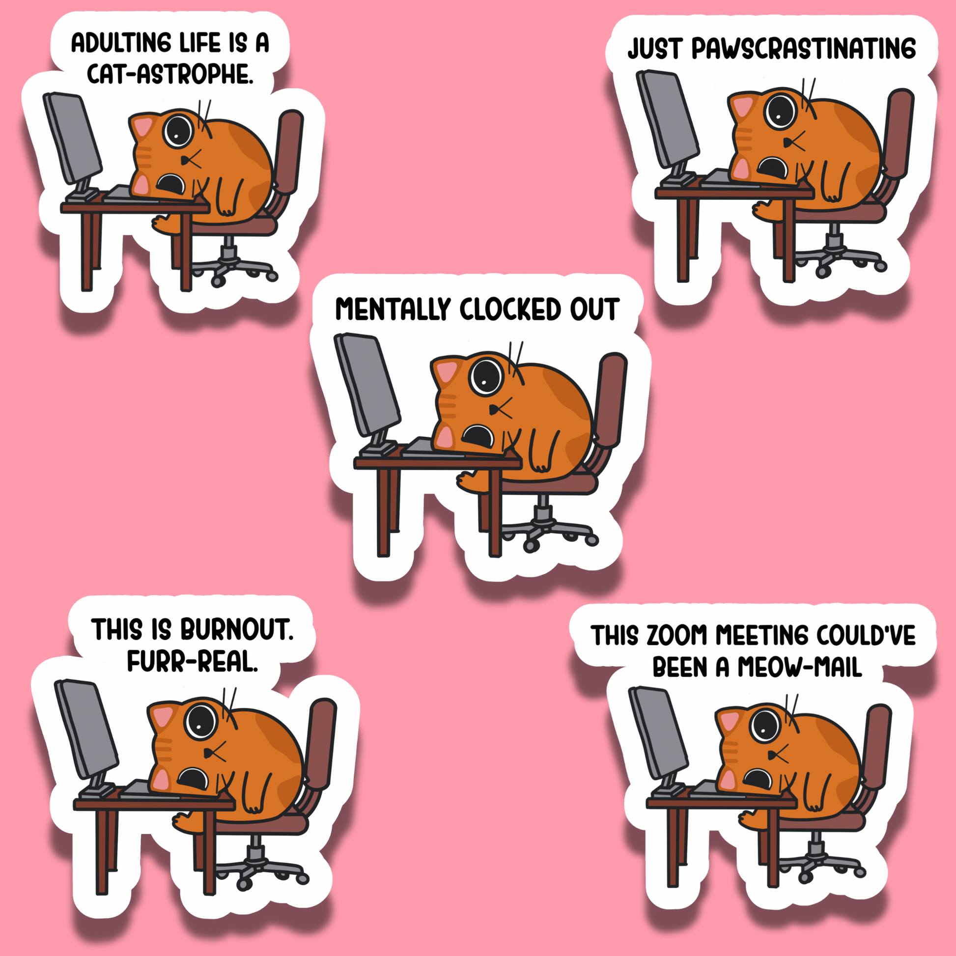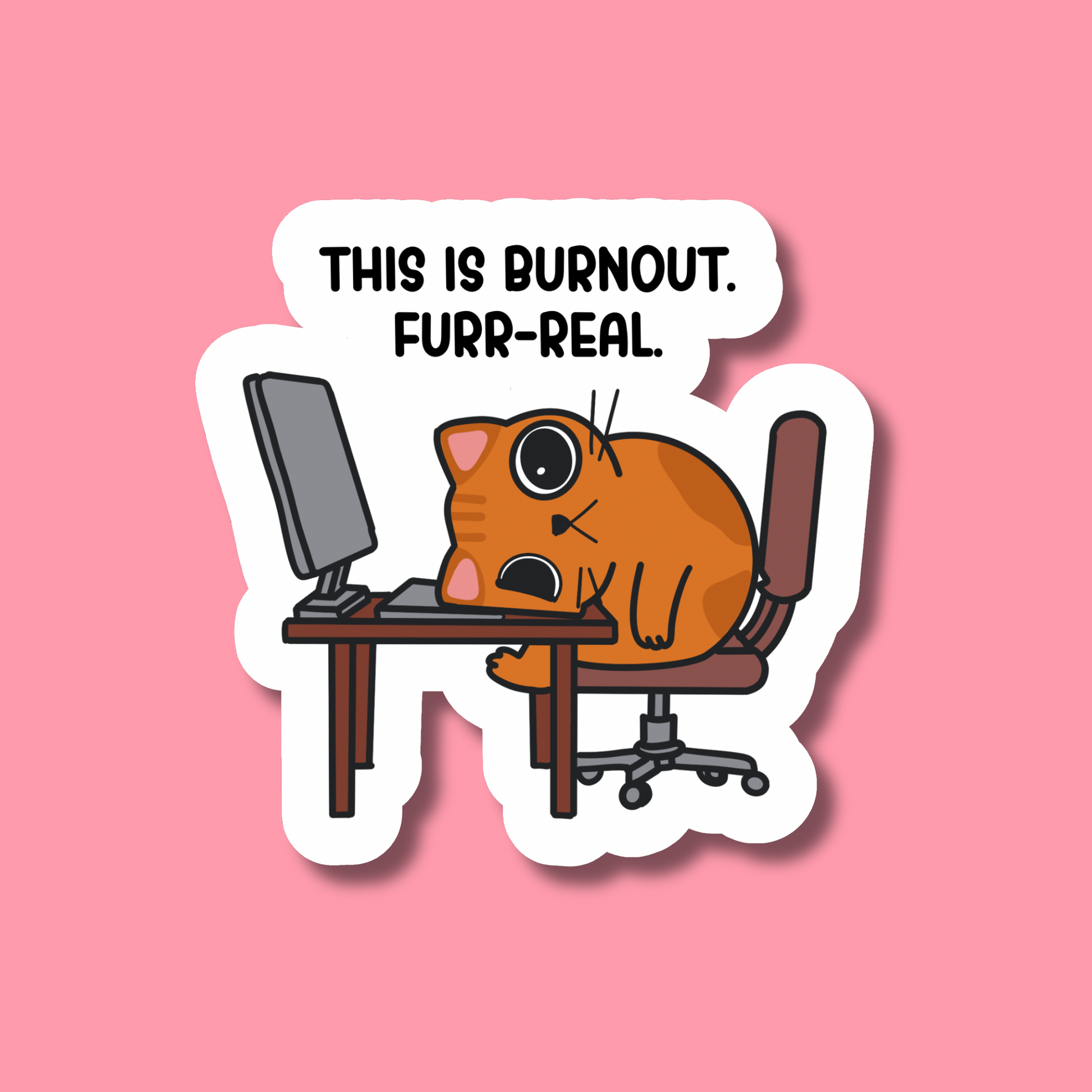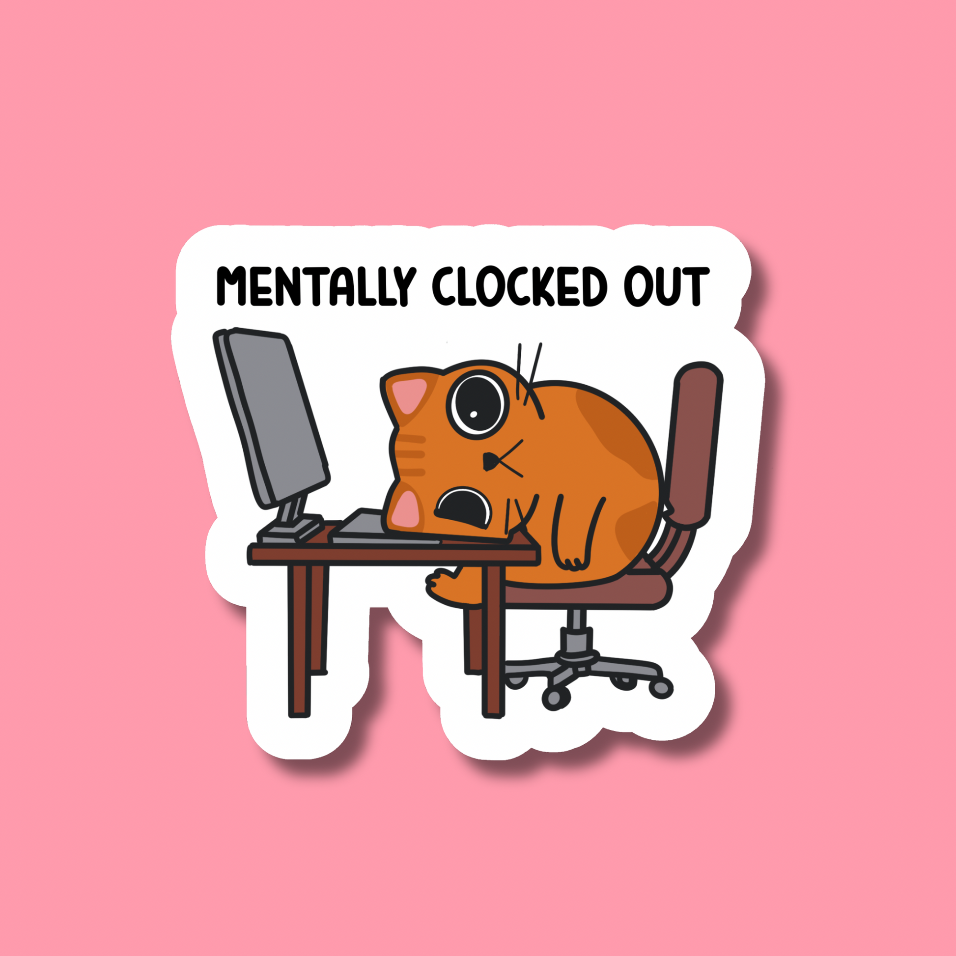 An orange cat completely done with work—face-down on the desk, computer still glowing in the background. The ultimate mood for anyone who’s hit their limit with deadlines and meetings.